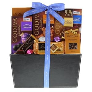 - Includes Godiva eight-piece truffles, milk chocolate caramel gems, milk chocolate cashews, and more